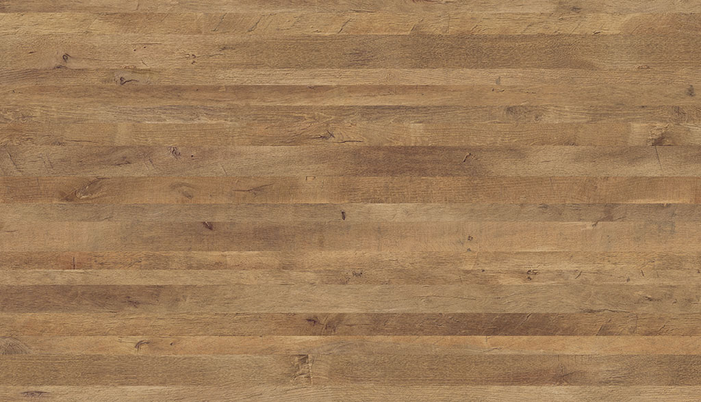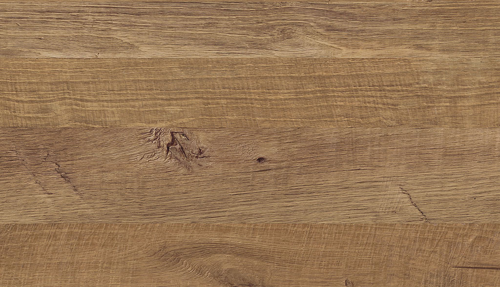 Barva a charakter: dřevo Vintage přírodní sestává z různých šířek planěk, což tomuto dekoru propůjčuje velmi dynamický vzhled. Úprava navozuje dojem nekonečna a velmi autenticky vypadající povrch přitahuje pozornost při použití zejména v kuchyni. Středně hnědý přírodní barevný odstín je živý díky kontrastně zbarveným sukům a prasklinám. Jednotlivá prkna ukazují různé řemeslné techniky, od hrubě řezaného dřeva až po kartáčovaný efekt.