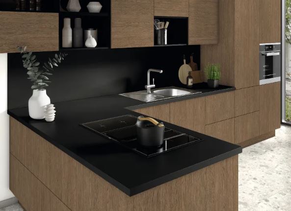 Barva a charakter: uni barva Černá zažívá návrat na scénu, a to nejen v nápadných černobílých kontrastech, ale také na větších plochách a na pracovních deskách. V tomto případě je to povrch ST89 Mineral Rock, který dodává odstínu U999 drsnější vzhled, a nese ve svém hlubokém lesku jemnou eleganci, díky níž vypadá černá odlišně z různých úhlů pohledů.
