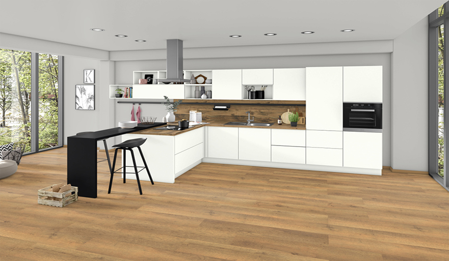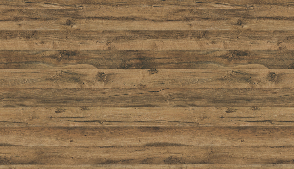 Barva a charakter: Dub Hunton světlý se svým výrazným plaňkováním, znatelnými prasklinami a suky je rustikálním, velmi autentickým dekorem. Umožňuje tak vytvářet zajímavé kontrasty jak u návrhů nábytku, tak při použití na pracovních deskách. Jasný barevný odstín je v kombinaci s černou velmi působivý a povrchová struktura ST10 Deepskin Rough ještě více podtrhuje přirozený charakter dekoru. Dekor působí mnohem přirozenějším dojmem ve formátu XL, protože v něm se suky a praskliny opakují méně často.