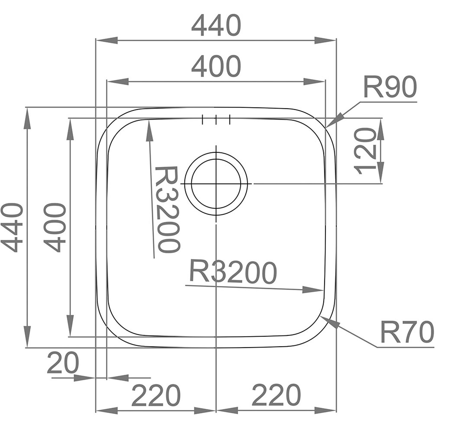 Nerezový jednodřez Sinks BAHIA 440 V 0,8mm leštěný s velkou výpustí.