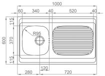 Nerezový celoplošný dřez s odkapem Sinks CLP-A 1000  M 0,5mm matný s malou výpustí.