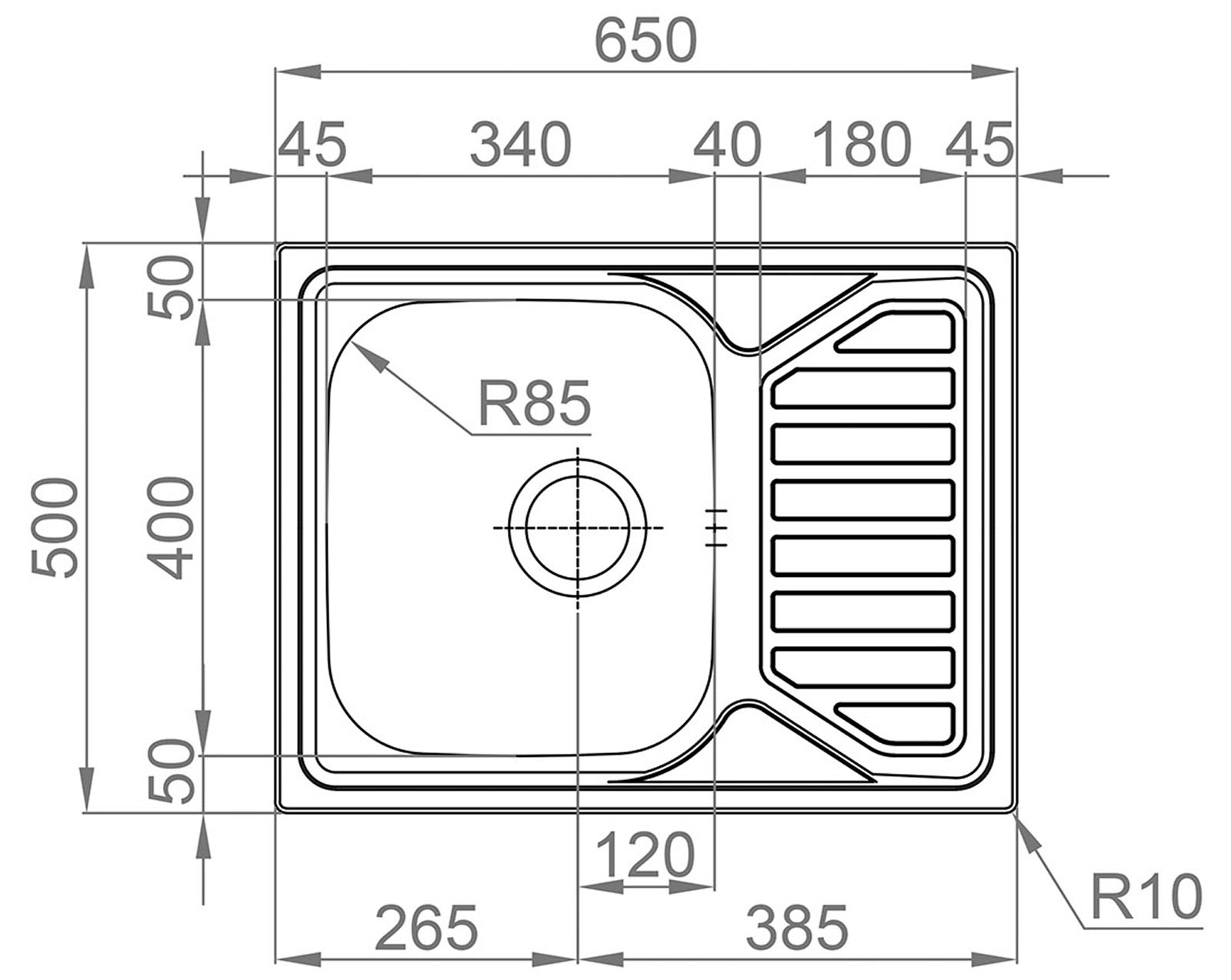 Nerezový dřez s krátkým odkapem Sinks Okio 650 M 0,6 mm matný se špuntem.
