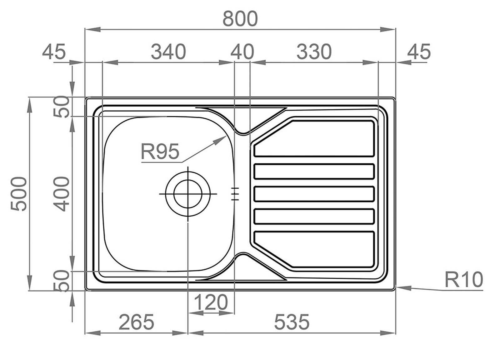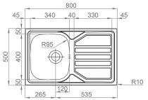 Nerezový dřez s odkapem Sinks Okio 800 V 0,6mm texturovaný se sítkovou výpustí.