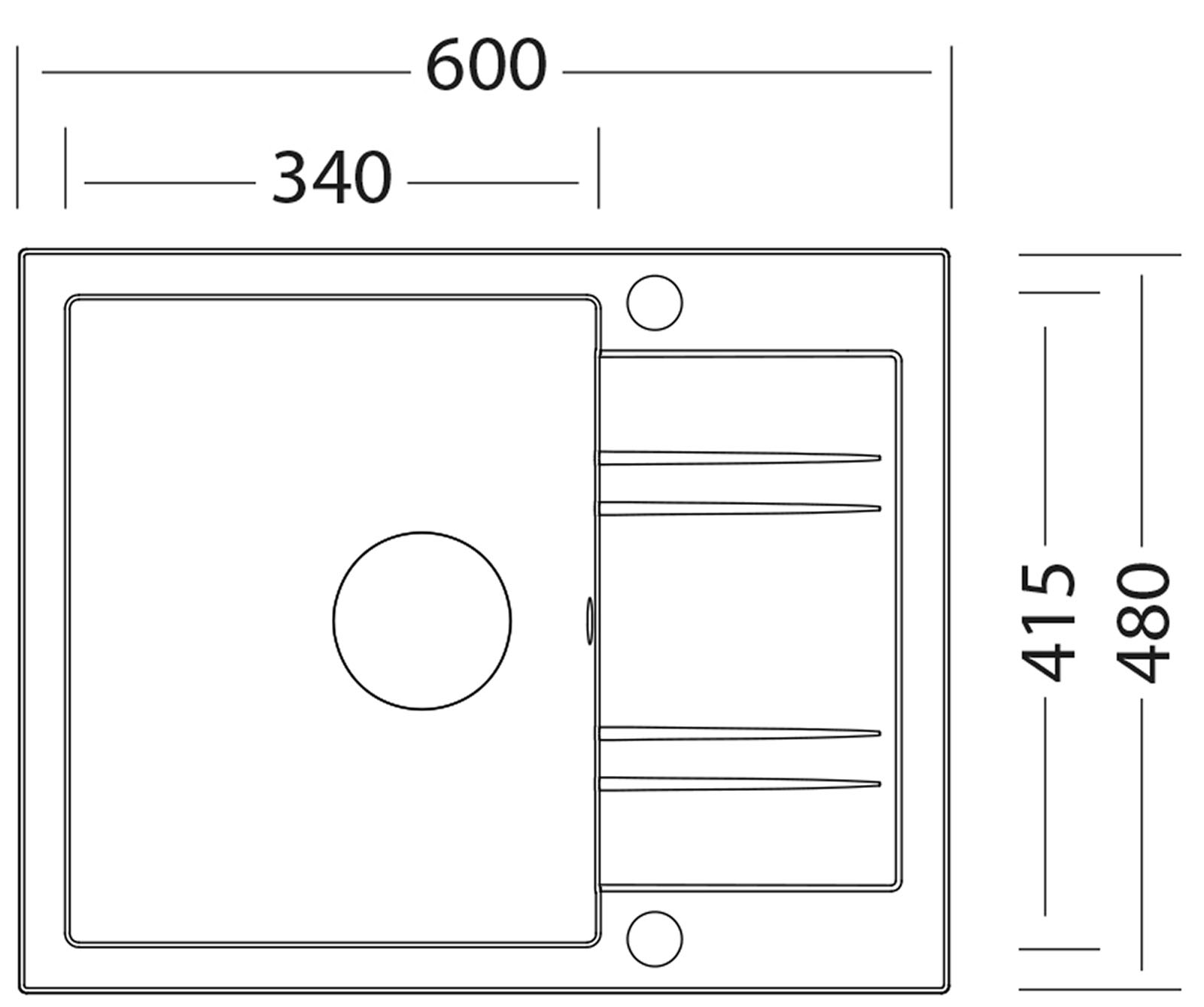 Dřez je určen pro horní i spodní montáž do pracovní desky a minimálně 450 mm široké skříňky. Pro spodní montáž (do kamenné desky) je nutné přikoupit speciální montážní sadu.