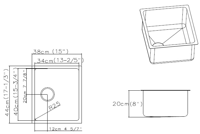 • Rozměr dřezu 380 x 440 mm