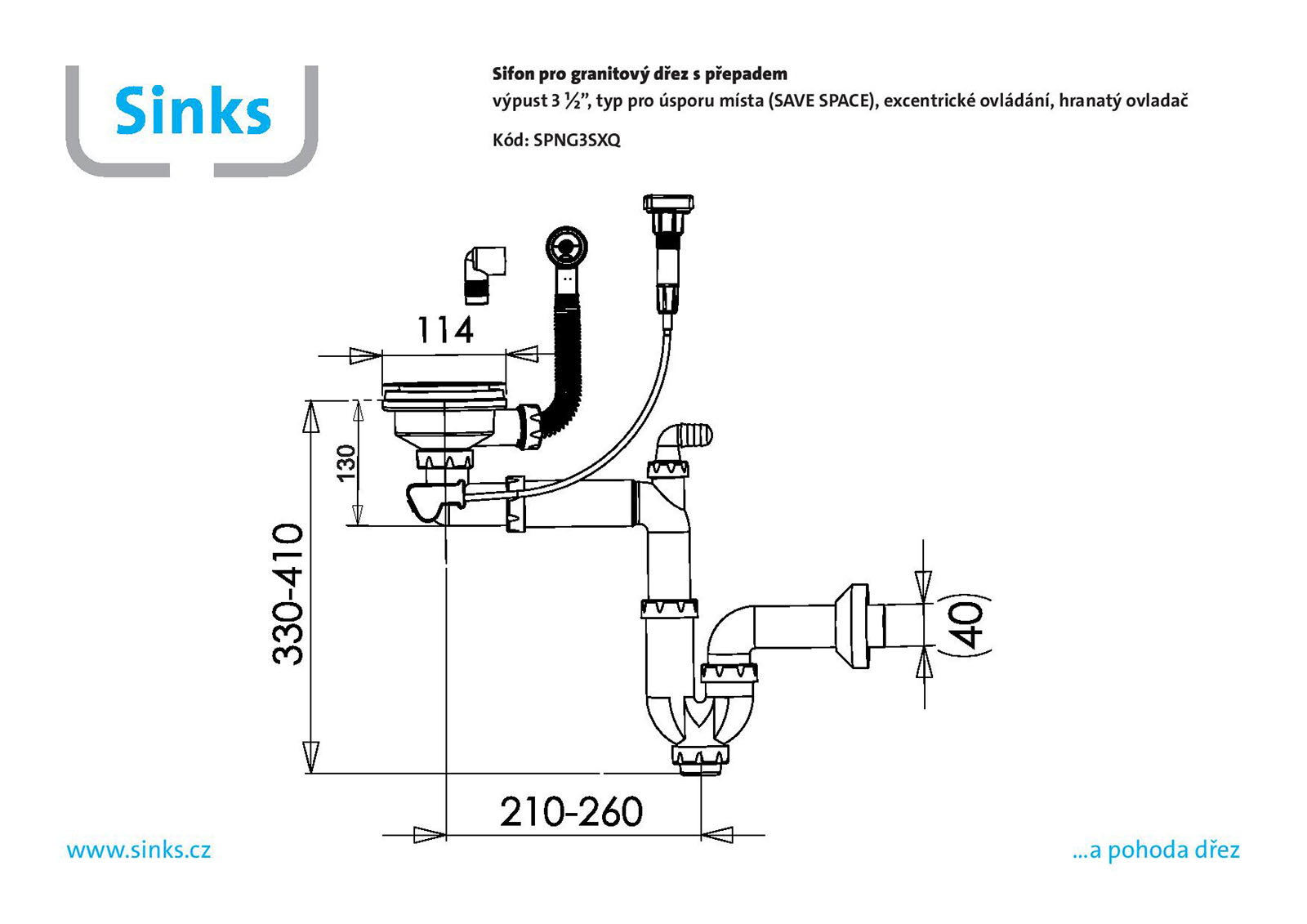 - Sifon 3 1/2" pro granit. dřezy s úsporou místa a s exc. ovladačem (hranatý)
