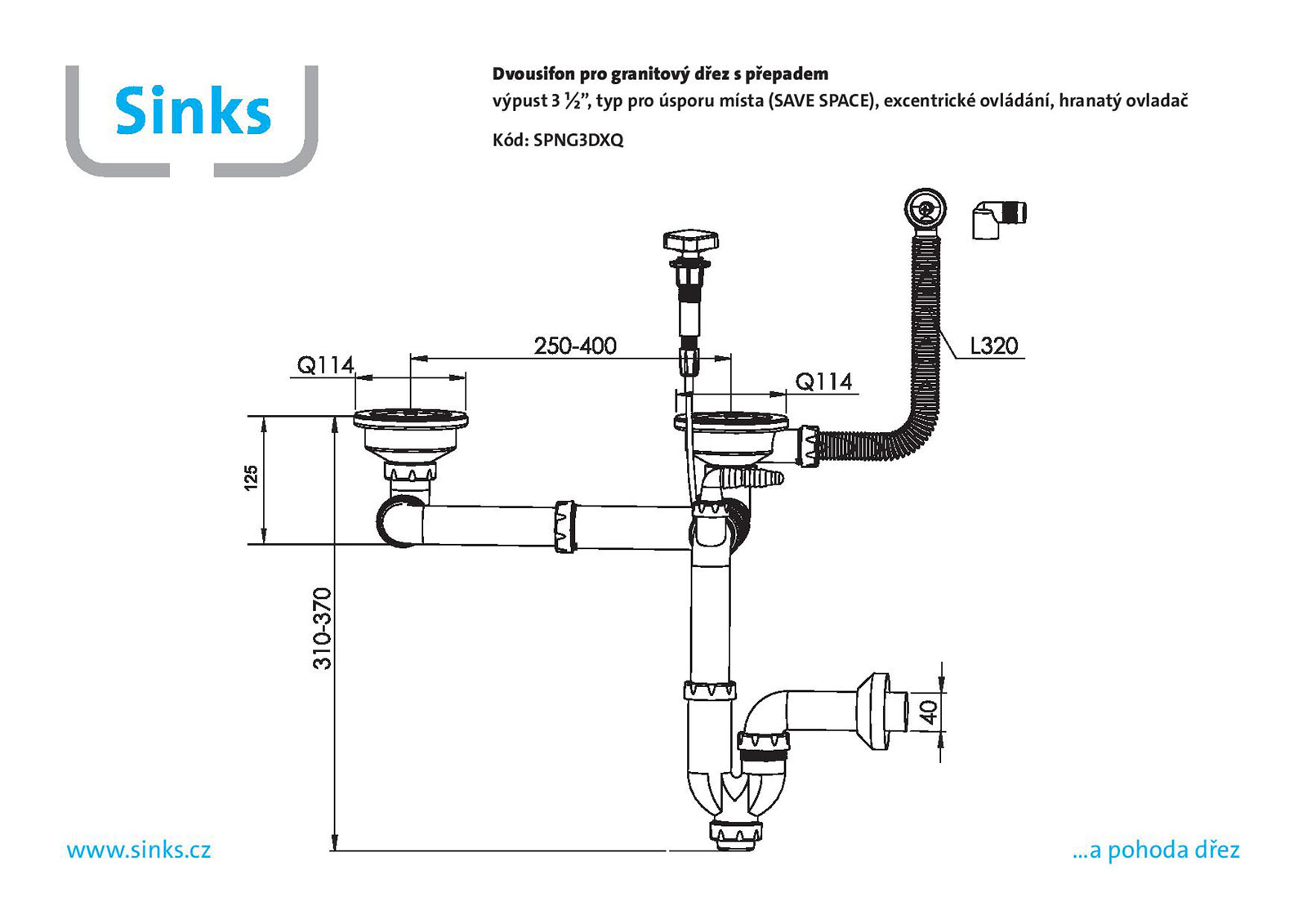 - Dvousifon 3 1/2" pro granit. dřezy s úsporou místa a s exc. ovladačem (hranatý)