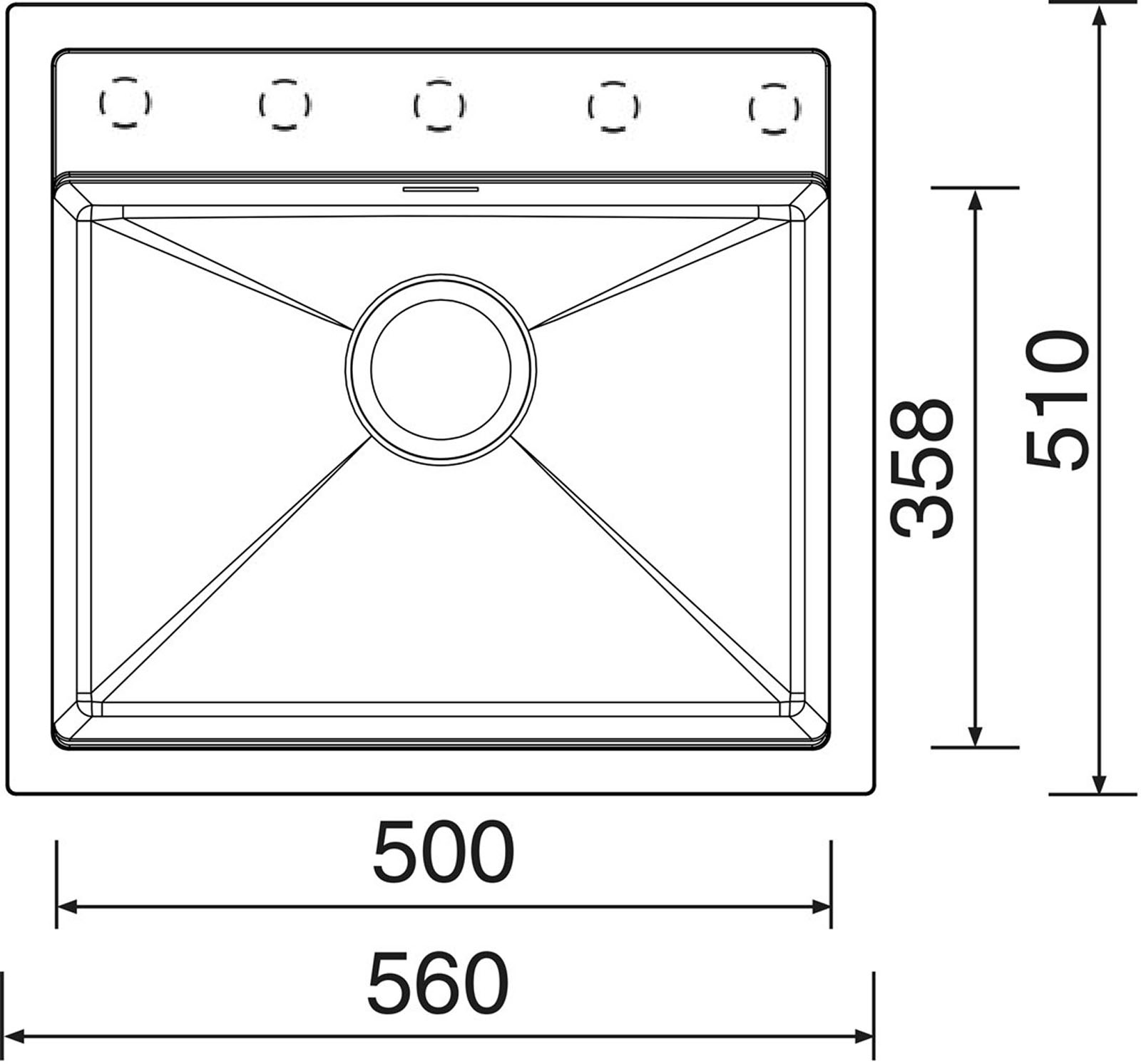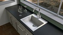 Dřez je určen pro horní i spodní montáž do pracovní desky a minimálně 600 mm široké skříňky. Pro spodní montáž (do kamenné desky) je nutné přikoupit speciální montážní sadu.