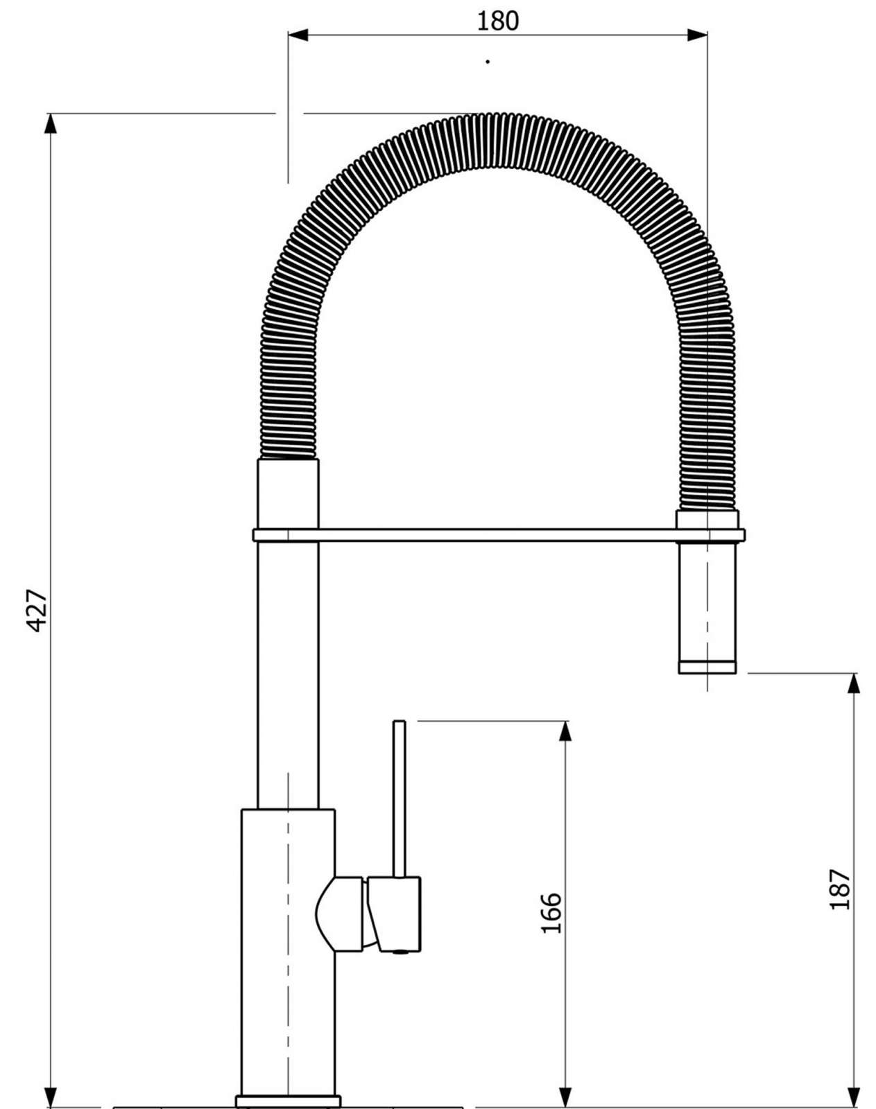Raménko je otočné a baterie je dodávána s veškerým příslušenstvím pro montáž. Výška baterie 427 mm zabezpečí bezproblémové napouštění vody i do vyšších hrnců.