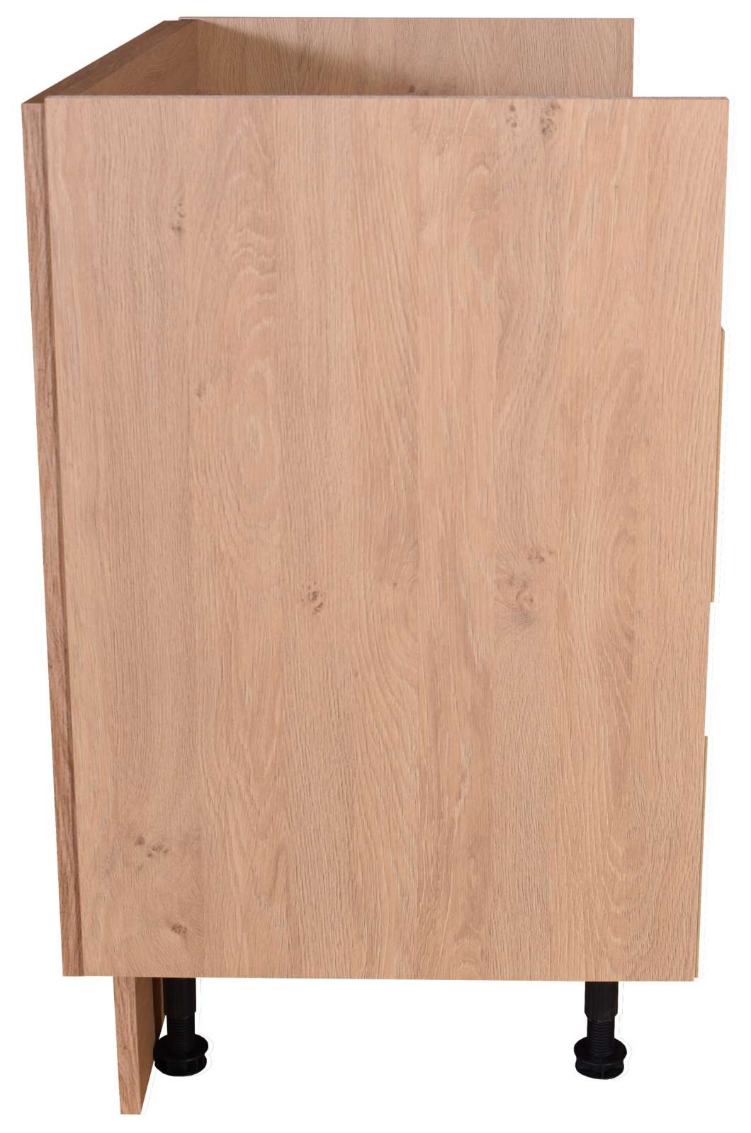 Pokud bude skříňka umístěna z boční pohledové strany kuchyňské linky (tedy je krajní skříňkou na otevřeném konci linky), je nutné použít bočnici a, pokud máte skříňku na nožičkách, také sokl z boční strany skříňky. Bočnici objednáte ve volbě "Bočnice" níže. V případě objednání bočnice dostanete také sokl. Úhelníky k uchycení bočnice ke skříňce nejsou součástí.
