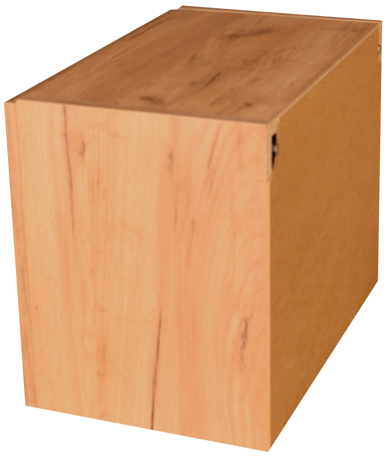 Skříňka je vyrobena z laminované dřevotřískové desky a má hrany z ABS, které ji chrání před vlhkostí a mechanickým poškozením.