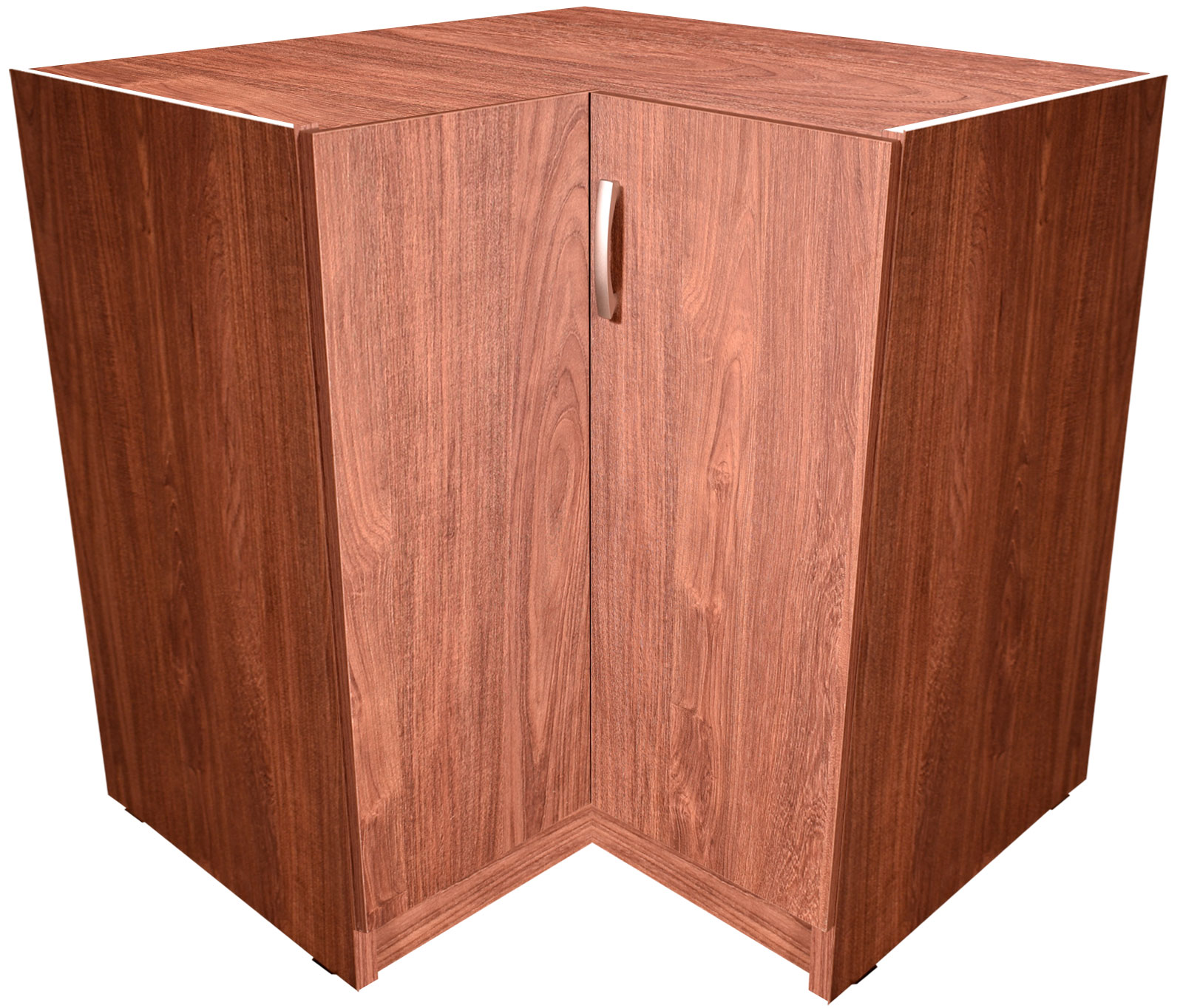 Spodní kuchyňská skříňka má výšku 82 cm včetně 10 cm vysokých rektifikačních nožiček. Hloubka korpusu po stranách je 50 cm a i s dvířky nepřesáhne celková hloubka skříňky 52 cm. Díky tomu za skříňkami vzniká prostor cca 6 cm pro vedení vody, plynu apod. Skříňka potřebuje prostor 90 x 90 cm. Skutečný rozměr skříňky je 84 x 84 cm. Z horní části je zakrytá. Skříňka je s dvoudveřovým otvíráním a úložný prostor je rozdělen jednou policí.