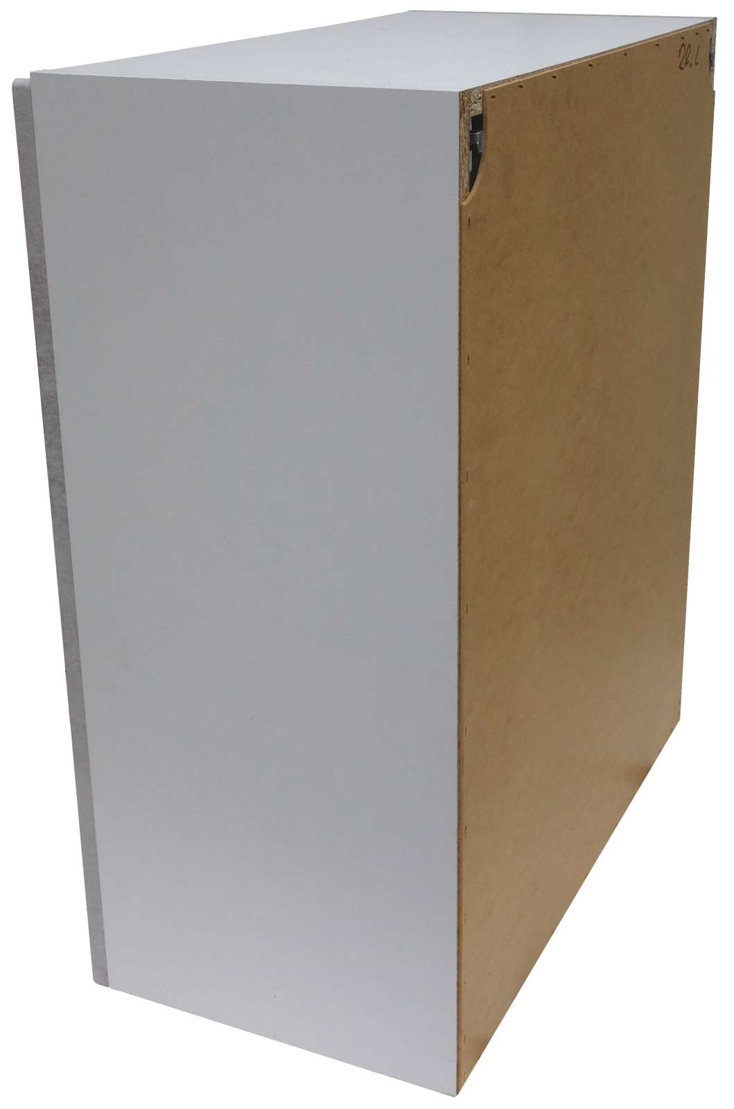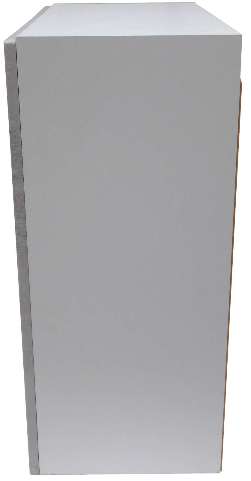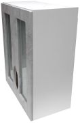Skříňka s matným sklem je široká 60 cm a vysoká 72 cm. Hloubka skříňky i s dvířky nepřesáhne 32 cm. Prosklená kuchyňská skříňka je dvoudveřová, s jednou skleněnou policí uvnitř. Dvířka vyrobené z MDF jsou potažené matnou folií. Povrch dvířek vyniká dlouhou životností a snadnou údržbou. Korpus skříňky vyroben z laminované dřevotřískové desky s hranami z ABS, které ho chrání před vlhkostí a mechanickým poškozením.