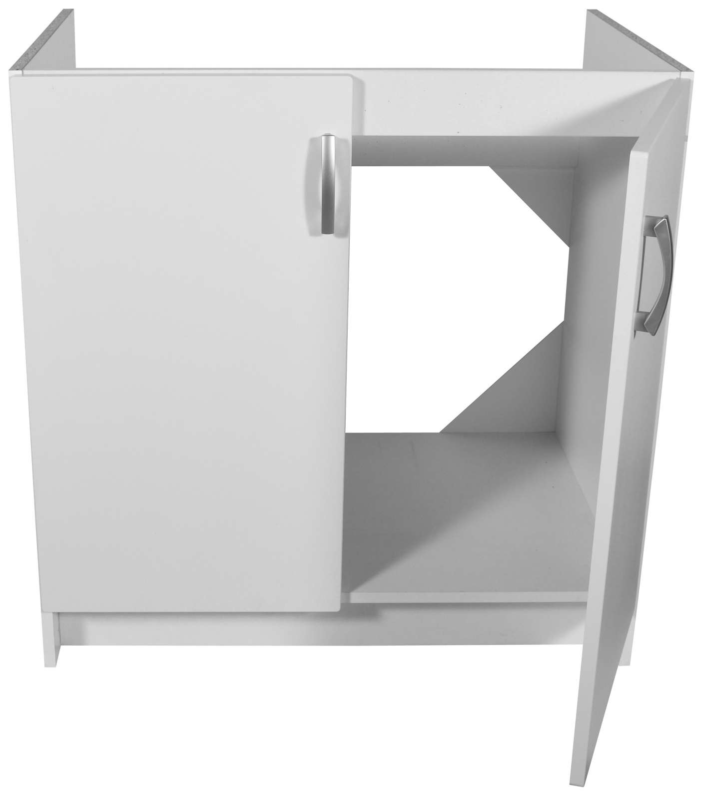 Kuchyňská skříňka pod dřez v bílé barvě. Dodáme k ní úchyty č. 26 zdarma. Rozteč úchytů: 9, 6 cm. Skříňku dodáme již pevně smontovanou - tak jak ji vidíte na obrázku.
