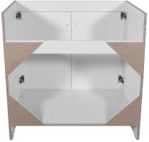 Dřezová skříňka je dvoudveřová, prostor uvnitř primárně vyhrazen pro dřez, není tedy rozdělen policí. Dvířka vyrobené z MDF jsou potažené matnou folií. Povrch dvířek vyniká dlouhou životností a snadnou údržbou. Korpus skříňky vyroben z laminované dřevotřískové desky s hranami z ABS, které ho chrání před vlhkostí a mechanickým poškozením.