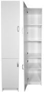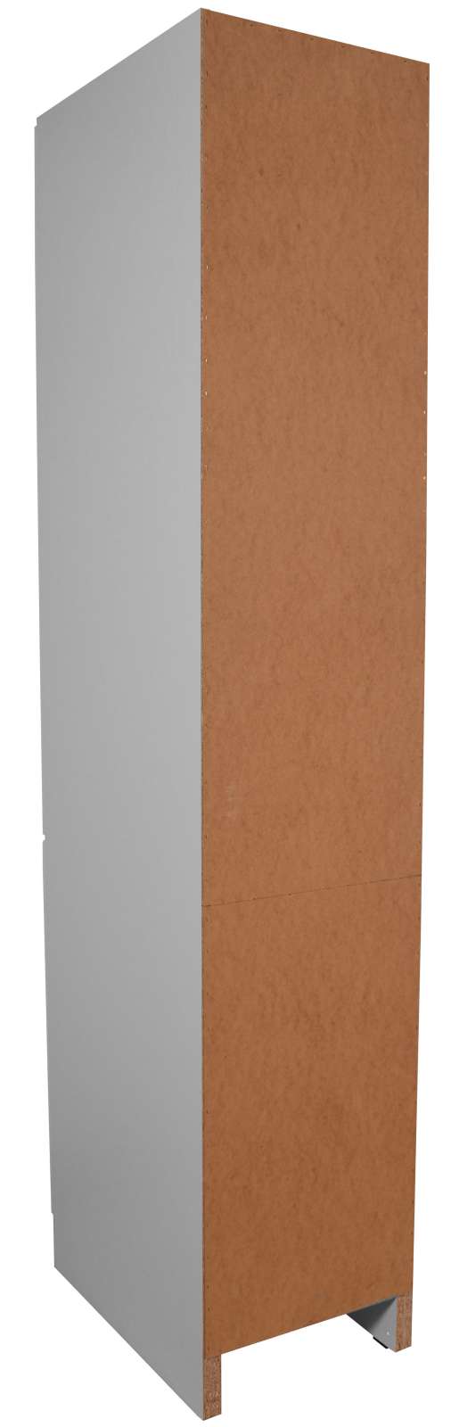 Skříň je široká 40 cm, vysoká 206 cm i s pevným soklem (10 cm). Celková hloubka skříně i s dvířky 58 cm. Dvířka vyrobené z MDF jsou potažené matnou folií. Povrch dvířek vyniká dlouhou životností a snadnou údržbou. Korpus vyroben z laminované dřevotřískové desky s hranami z ABS, které ho chrání před vlhkostí a mechanickým poškozením.