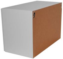 Bílá výklopná skříňka s úchytem č. 26 zdarma, rozteč úchytu: 9, 6 cm. Skříňku dodáme již pevně smontovanou - tak jak ji vidíte na obrázku, včetně závěsného systému, kterým se uchytí na závěsnou lištu - tu si můžete přiobjednat ve variantách zboží.