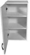 Skříňka je široká 40 cm a vysoká 72 cm. Hloubka skříňky i s dvířky nepřesáhne 32 cm. Horní kuchyňská skříňka je jednodvéřová, s jednou policí uvnitř. Dvířka vyrobené z MDF jsou potažené matnou folií. Povrch dvířek vyniká dlouhou životností a snadnou údržbou. Korpus skříňky vyroben z laminované dřevotřískové desky s hranami z ABS, které ho chrání před vlhkostí a mechanickým poškozením.