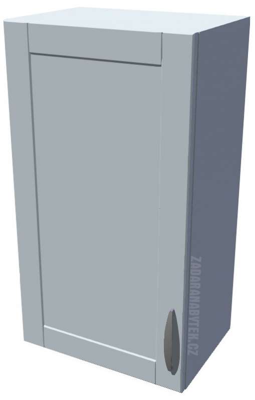 40 cm široká skříňka je jednodveřová, vysoká je 72 cm. Hloubka korpusu je 30 cm a i s dvířky nepřesáhne celková hloubka skříňky 32 cm. Uvnitř skříňky jsou dvě police.