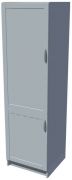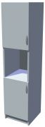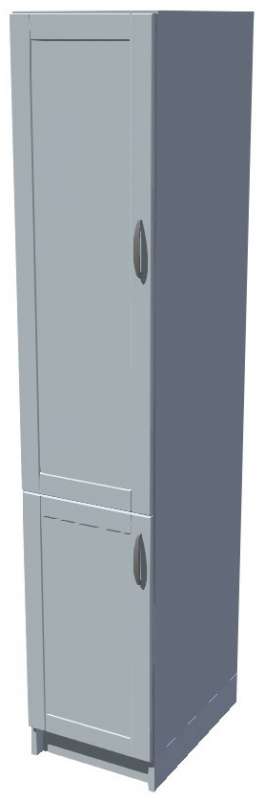 40 cm široká skříňka je na pevném soklu vysokém 10 cm. Celková výška i se soklem je 206 cm. Hloubka korpusu je 56 cm a i s dvířky nepřesáhne celková hloubka skříňky 58 cm. Za skříňkou již není žádný prostor pro vedení vody, plynu, elektrické zásuvky apod. V dolní části je jedna a v horní dvě volné police.