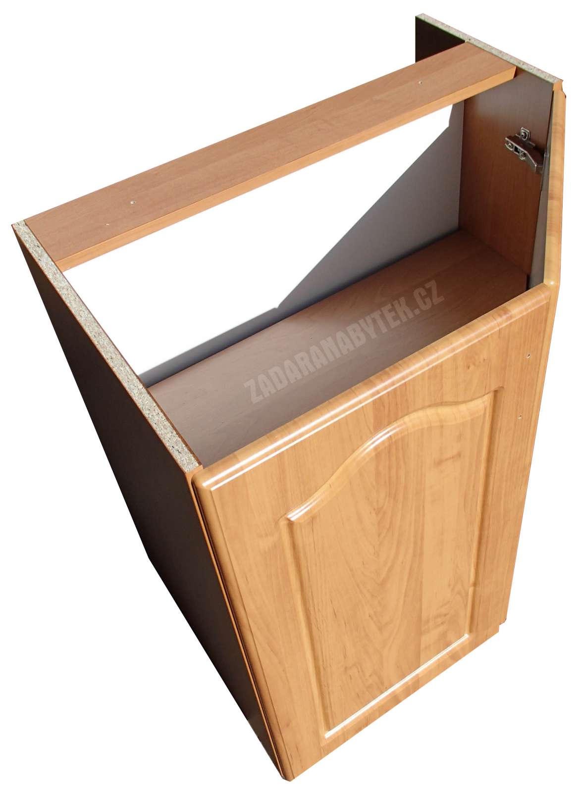Pokud bude skříňka umístěna z boční pohledové strany kuchyňské linky (tedy je krajní skříňkou na otevřeném konci linky), je nutné použít boční přířez. Přířez objednáte ve volbě "Boční přířez" níže. Úhelníky k uchycení přířezu ke skříňce nejsou součástí.