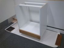 Pokud bude skříňka umístěna z boční pohledové strany kuchyňské linky (tedy je krajní skříňkou na otevřeném konci linky), je nutné použít boční přířez. Přířez objednáte ve volbě "Boční přířez" níže. Úhelníky k uchycení přířezu ke skříňce nejsou součástí.