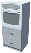 60 cm široká skříňka je na pevném soklu vysokém 10 cm. Celková výška i se soklem je 128 cm. Hloubka korpusu je 56 cm a i s dvířky nepřesáhne celková hloubka skříňky 58 cm. Za skříňkou již není žádný prostor pro vedení vody, plynu, elektrické zásuvky apod. V dolní části jsou dva šuplíky s ložiskovými pojezdy. Skříňka není nahoře zakrytá, má jen příčky k uchycení pracovní desky.
