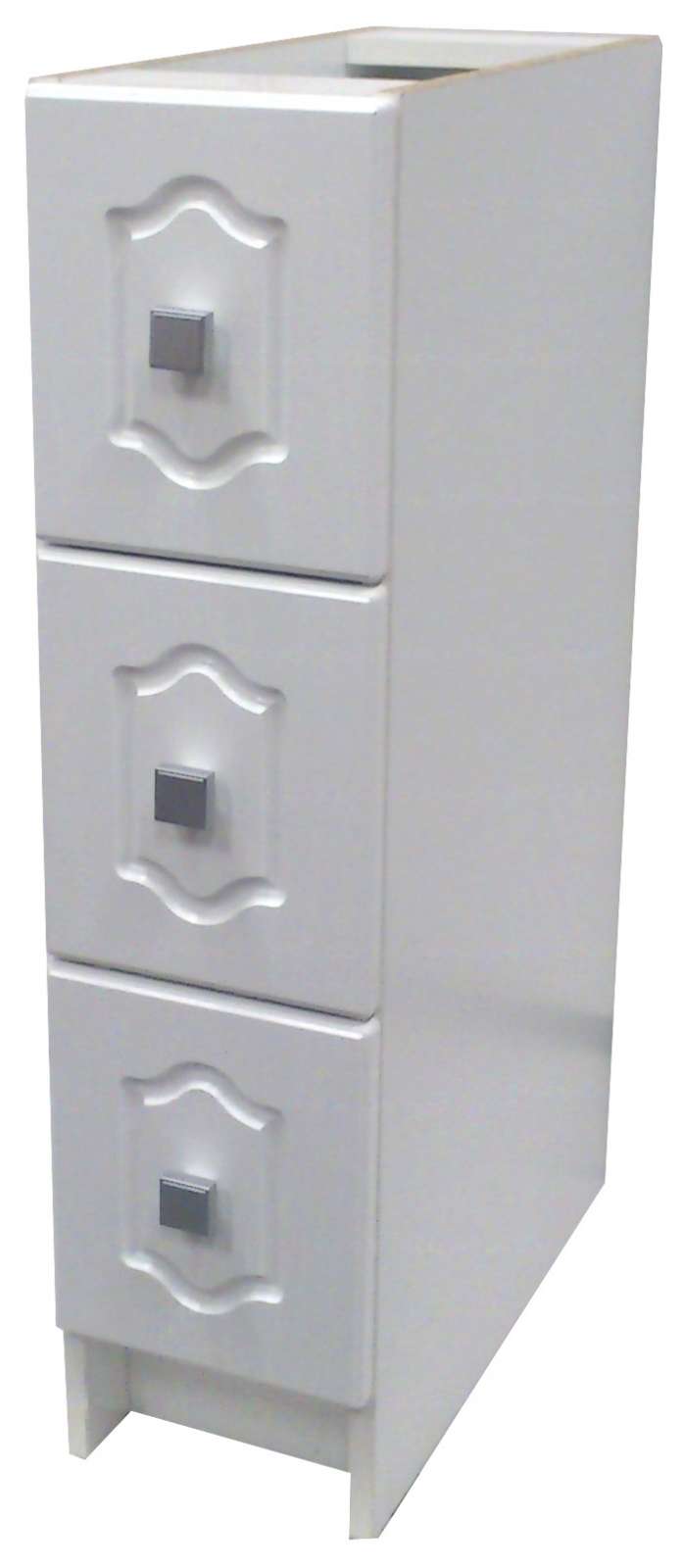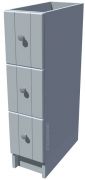 20 cm široká skříňka je na pevném soklu vysokém 10 cm. Celková výška i se soklem je 82 cm. Hloubka korpusu je 50 cm a i s dvířky nepřesáhne celková hloubka skříňky 52 cm. Díky tomu za skříňkou vzniká prostor cca 6 cm pro vedení vody, plynu, zásuvek apod. V případě varianty s luxusními pojezdy je hloubka skříňky 54 cm a mezera je pouze 4 cm. Vršek skříňky je otevřený a jsou zde umístěny jen příčky k uchycení pracovní desky.