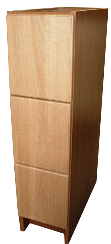 Pokud bude skříňka umístěna z boční pohledové strany kuchyňské linky (tedy je krajní skříňkou na otevřeném konci linky), je nutné použít boční přířez. Přířez objednáte ve volbě "Boční přířez" níže. Úhelníky k uchycení přířezu ke skříňce nejsou součástí.