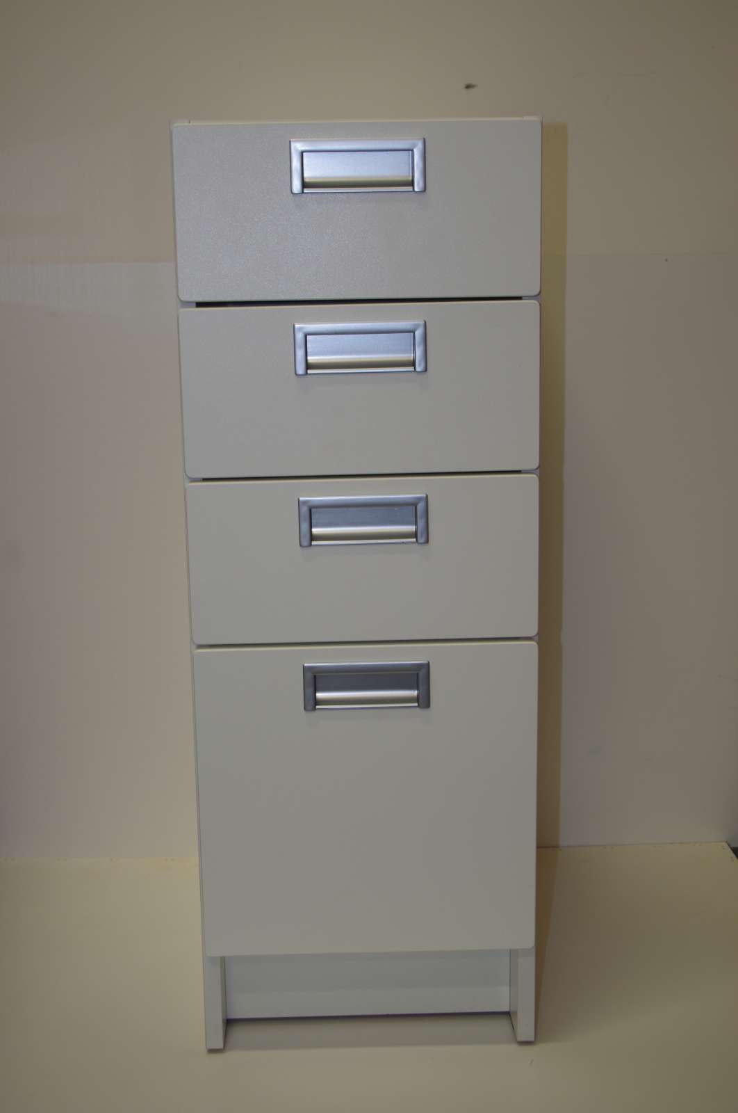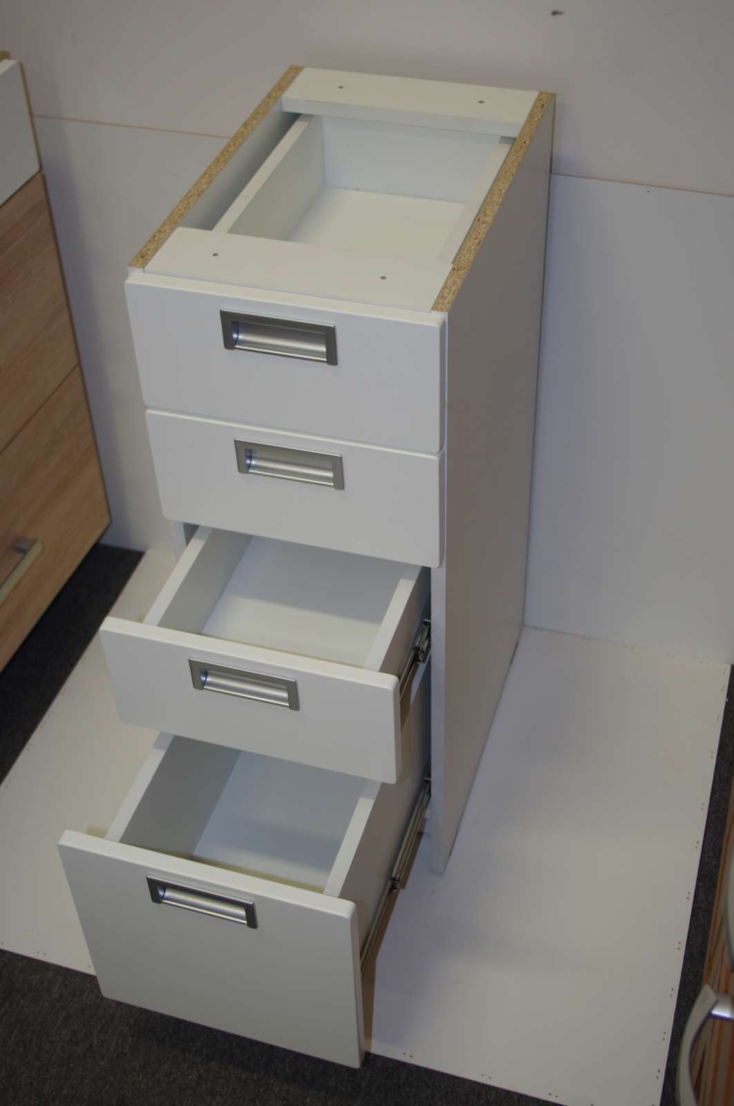 30 cm široká skříňka je na pevném soklu vysokém 10 cm. Celková výška i se soklem je 82 cm. Hloubka korpusu je 50 cm a i s dvířky nepřesáhne celková hloubka skříňky 52 cm. Díky tomu za skříňkou vzniká prostor cca 6 cm pro vedení vody, plynu, zásuvek apod. V případě varianty s luxusními pojezdy je hloubka skříňky 54 cm a mezera je pouze 4 cm. Vršek skříňky je otevřený a jsou zde umístěny jen příčky k uchycení pracovní desky.