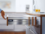 Pojezdy šuplíku jsou ložiskové kovové plnovýsuvy. Můžete si však zvolit luxusní pojezdy s tlumením. V tomto případě jsou skříňky hlubší! Skříňky vybavené systémem pojezdů Blum TANDEMBOX nebo systémem GTV jsou hluboké 54 cm.