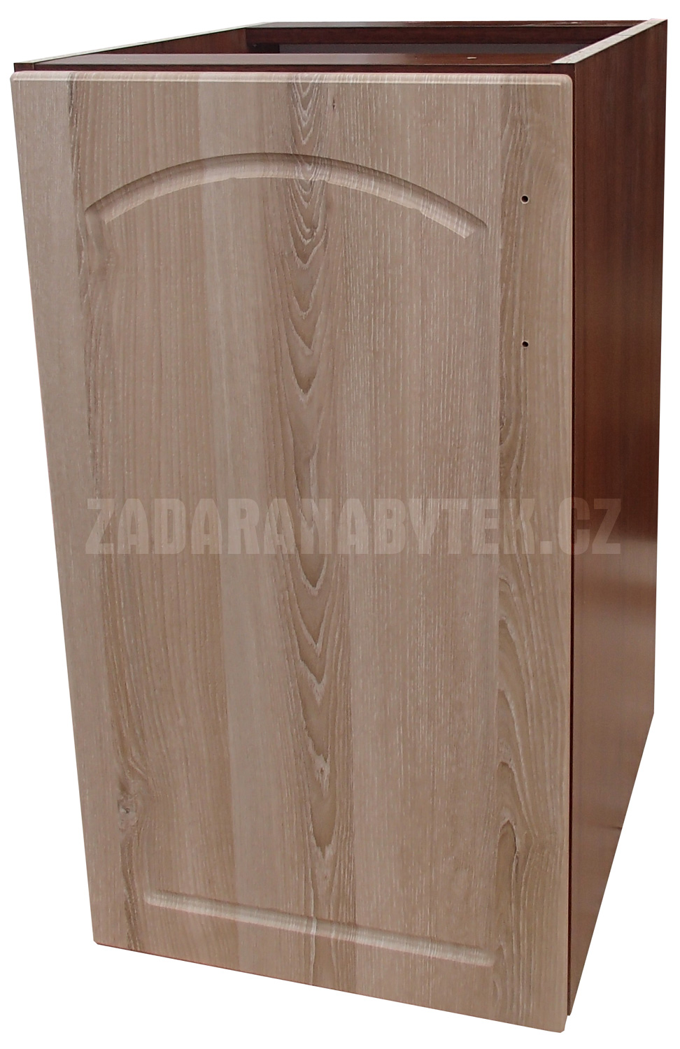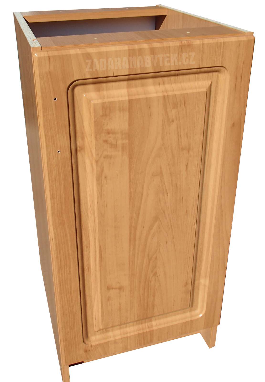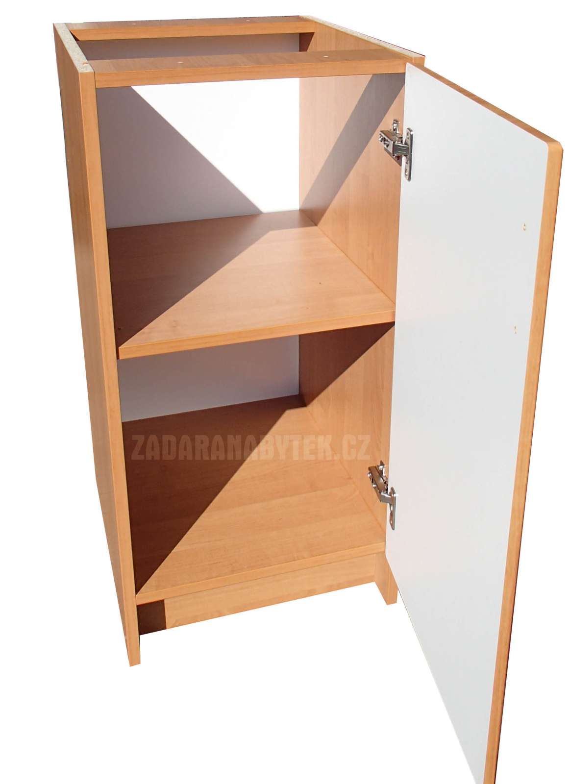 40 cm široká skříňka je jednodveřová a na pevném soklu vysokém 10 cm. Celková výška i se soklem je 82 cm. Hloubka korpusu je 50 cm a i s dvířky nepřesáhne celková hloubka skříňky 52 cm. Díky tomu za skříňkou vzniká prostor cca 6 cm pro vedení vody, plynu, zásuvek apod. Uvnitř skříňky je jedna police. Vršek skříňky je otevřený a jsou zde umístěny jen příčky k uchycení pracovní desky.